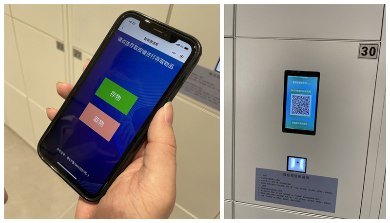這款自助微信寄存柜的使用方法不同于以往掃碼支付開(kāi)柜門寄存,存物時(shí),需要先掃微信寄存柜屏幕上的二維碼,然后在手機(jī)上點(diǎn)擊存物,生成存物二維碼,再用存物二維碼對(duì)準(zhǔn)柜子上的掃碼器,聽(tīng)到“滴”一聲后,柜門打開(kāi),放入物品,關(guān)好柜門,存物完成。取物也是同樣的操作流程。