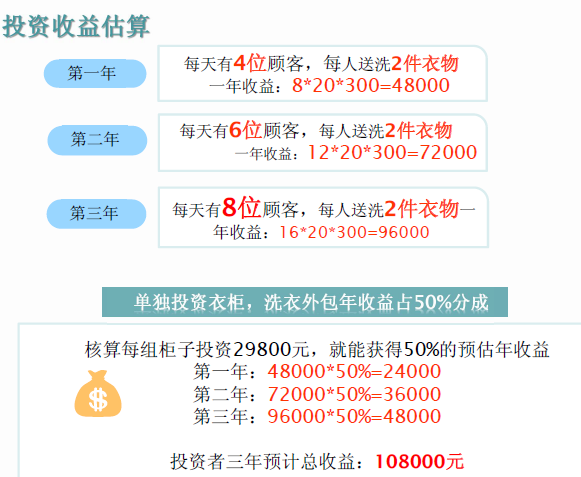 看了一個智能自助洗衣柜的加盟商給出的盈利預(yù)測,看上去前景(錢景)相當(dāng)不錯,可實際情況真不知道如何!